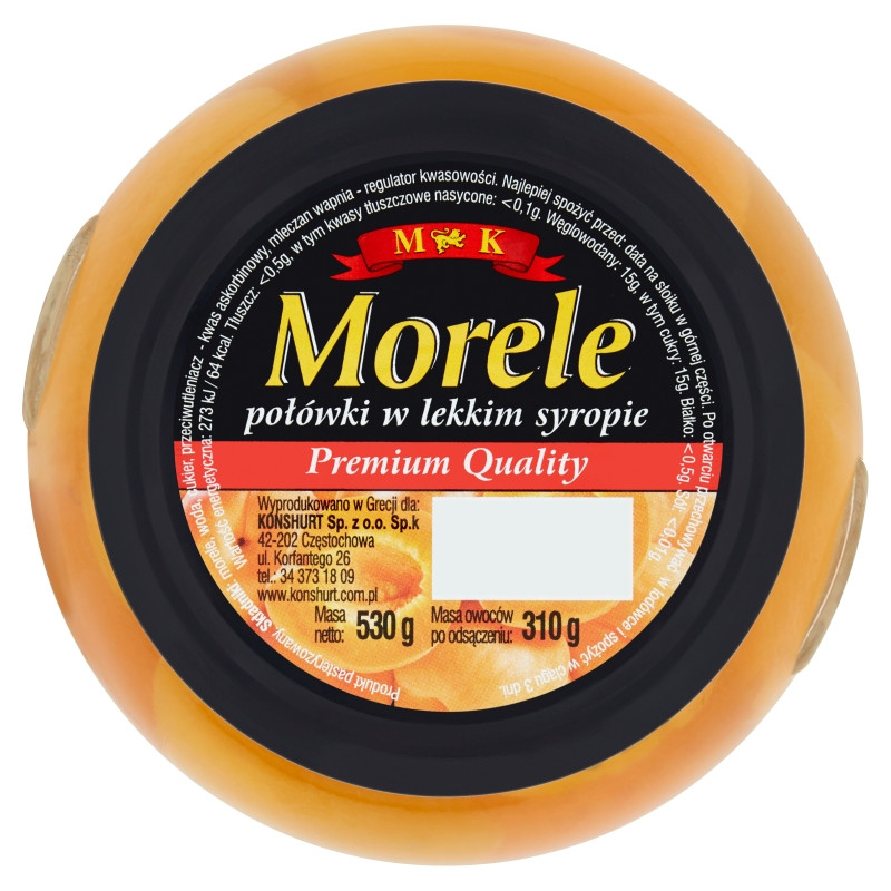 Абрикос половинками в легкому сиропі M&K Morele 530/310г Польща Воістину розкішна консервація — це абрикоси часточками в сиропі. Ця заготівка така ароматна та літня, що, відкривши її, ви точно поринете в спекотний літній день. А яка вона гарна? Нам здається, що всі заготовки з абрикосів — варення, компот, джем — справді гідні царського столу. У кожній ложці, у кожному плоді не тільки вітаміни, а й аромат і чудовий смак.