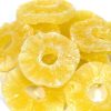Сушені ж ананаси є джерел калію і магнію, заліза і цинку, а також вітамінів групи B і клітковини, корисної для травлення. Також сушені ананаси допомагають позбутися від набряків, додають сили і покращують настрій. Сушені ананаси використовуються не тільки в якості закуски або снека – з ними можна готувати різні страви, а також прикрашати випічку і кондитерські вироби.