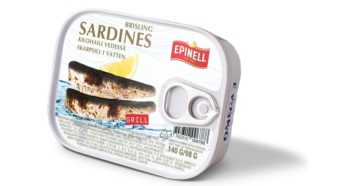 Балтійські Сардини гриль у джерельній воді Epinell Grill 140 г Естонія Корисні властивості: Жирні кислоти виступають антиокислювачами для клітин, що істотно знижує їх переродження в атипичні. Вони знижують «поганий» холестерин і компенсують погану роботу серця. Коензим Q10, який містить сардину, зберігає пам’ять у літньому віці. Вітамін В12 активно бере участь в обміні глюкози, тому сардина корисна людям із діабетом 2 типу. Дует вітамінів А й Е надає молодості як самим клітинам організму, так і волоссю, шкірі та очам. Позитивно впливає на гормональний фон жінок. Дуже цінними є кістки сардини. У них утричі більше фтору й кальцію. Щоб не захворіти остеопорозом, краще не викидати м’які кісточки. Сардина забезпечує організм природним вітаміном D. Від його дефіциту розвивається сколіоз і пухить у дітей, а також крихкість кісток у дорослих. Сардина містить багато йоду.