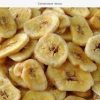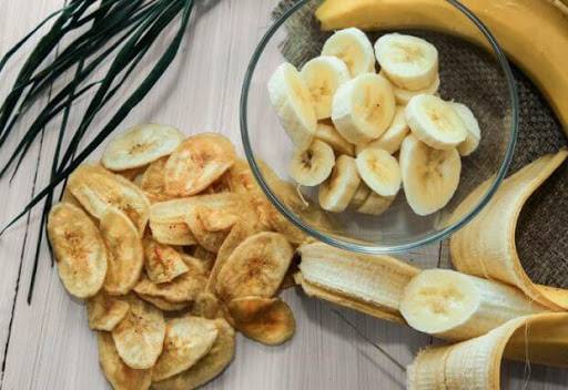 Склад і корисні властивості бананових чіпсів Крім своїх смакових якостей, бананові чіпси володіють корисними властивостями. Так у них у великих кількостях присутній і , що надають благотворну дію на роботу серця, судин, формування кісток і зубів. Наділені вони і , який регулює енергетичний баланс, а сприяє правильній роботі центральної нервової та сечовивідної систем. У невеликих кількостях містять , , і , і . З вітамінів присутня в них (), (), ().