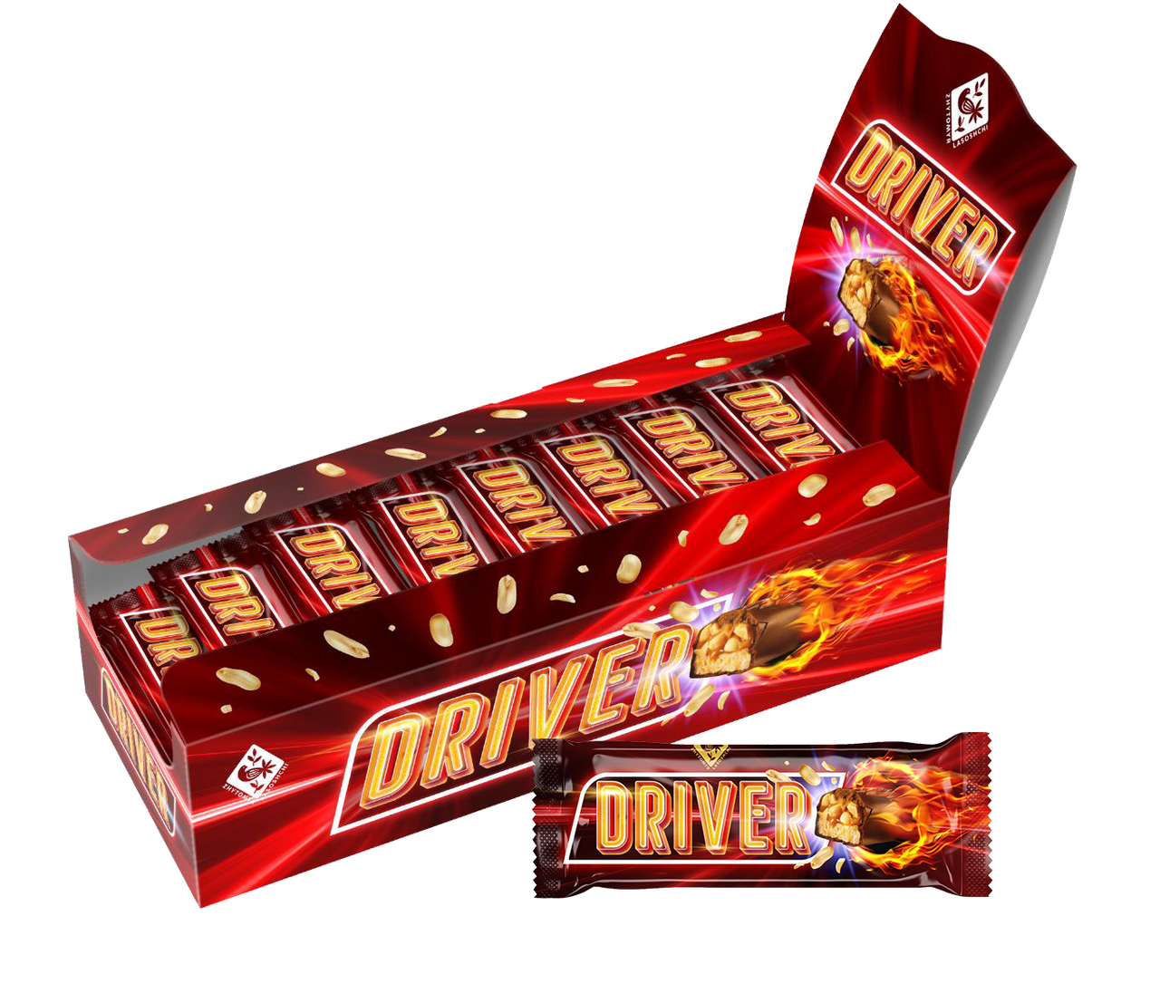 Батончик Driver глазурований з арахісом 40 г Україна Шоколадно – молочний батончик з великою кількістю смаженого арахісу , м’якою карамеллю і нугою в шоколадній глазурі, пр-ва України, 40 гр.