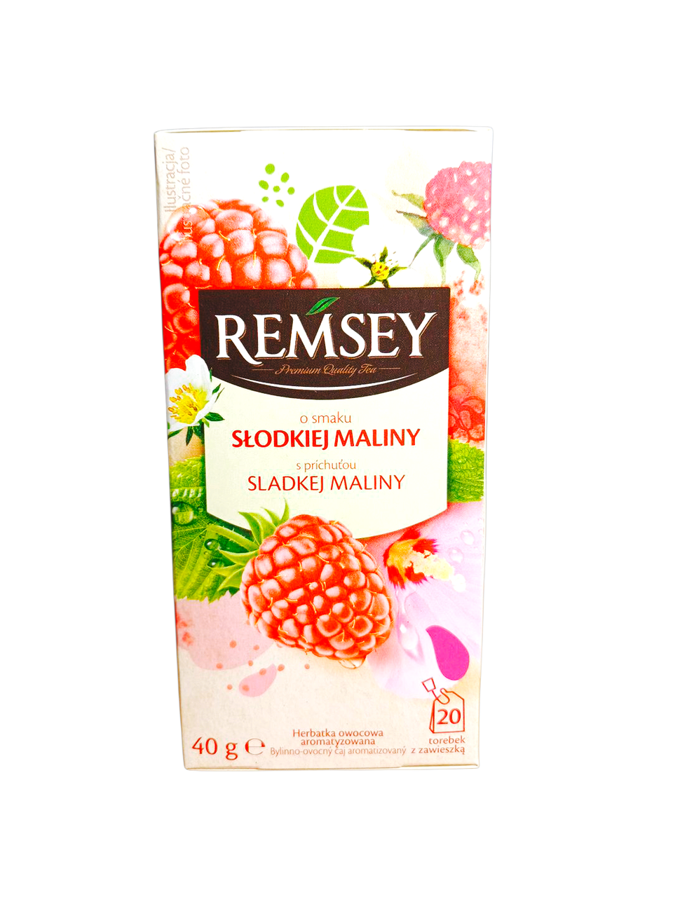 Чай фруктовий Солодка малина Remsey Slodkiel Maliny (20×2г) 40г Польща Чай пакетований являє собою збір ягід, листя, фруктів, квітів з додаванням натуральних ароматних олій. Купаж ретельно підбирається за тонкими нотками смакового та колірного поєднання, взаємодії компонентів та корисними властивостями. У своєму складі напій не містить чайного листя і впливає на організм м’яко і тонізує, підвищує імунітет і приносить людині справжню насолоду. Виробництво: Польща Сильно втомилися і паморочиться в голові? Присядьте і випийте чайку з шоколадкою. Шоколад при взаємодії з танінами – речовинами чаю, що бадьорять, – набагато активніше стимулює мозковий кровообіг і знімає спазми судин. Тому рекомендуємо ознайомитись з нашим розділом: Шоколад, шоколадні цукерки, марципан та ін.