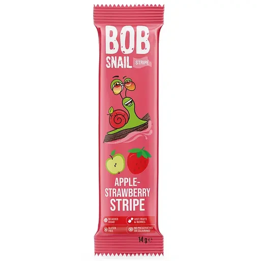 Цукерка фруктова Яблуко-Полуниця страйп БЕЗ ЦУКРУ ТА ГЛЮТЕНУ Bob Snail 14 г Натуральні цукерки Bob Snail Яблуко — зручний та корисний перекус для всієї родини. Смаколики в індивідуальному пакуванні вміщуються навіть в кишеню, щоб дієтичні солодощі супроводжували вас всюди. Особливості: – у складі — тільки добірні українські фрукти; – без доданого цукру, консервантів, глютену та барвників; – зручний та веселий спосіб їсти більше фруктів, щоб отримувати більше клітковини.