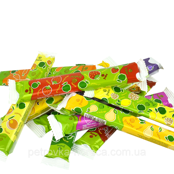 Цукерки «Фрутини» – це натуральне асорті пастили, кожна штучка якої приготовлена з окремого інгредієнта – корисного, наповненого вітамінами фрукта. Особливі технології дозволяють зберігати мікроелементи свіжих інгредієнтів в готовому десерті, роблячи продукт не тільки яскравим і насиченим за смаковими характеристиками, але і дивно корисним. Солодощі «Фрутини» — чудове ласощі для ласунів будь-якого віку! Навіть одна цукерка «Фрутини» здатна швидко вгамувати відчуття голоду, підвищити настрій і повернути смак до життя! Цукерка-пастила натуральна з фруктів, ягід і овочів Frutini (Фрутини) в асортименті. Вага однієї цукерки: 20 р. Виробник: Україна. Лінійка представлена 12 смаками: – Груша – Лимон-імбир – Абрикос – Слива – Апельсин – Полуниця – Малина – Яблуко – Гарбуз – Морква – Чорна смородина – Вишня