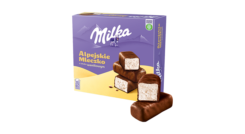Цукерки пташине молоко MILKA Альпійське молочко ванільне 330 г Німеччина Цукерки Milka Альпійське Молоко — смачні ласощі для справжніх ласунів від виробника бренда Milka. Заснований 1901 року, він швидко набув всесвітньої популярності завдяки чудовій якості швейцарського шоколаду, виробленого зі справжнього альпійського молока та високоякісних какао-бобів. Зараз власником марки є американська компанія Kraft Food і виробляється шоколад не тільки у Швейцарії, але й у багатьох країнах світу. Але всюди в процесі виробництва солодощів використовують тільки органічні компоненти. Тільки корови, що пасуються на зелених альпійських луках, можуть давати чудове молоко, з якого і створюються знамениті солодощі. Цукерки Milka Альпійське Молоко схожі всім відоме пташине молоко, але з насиченішим вершковим смаком. Ніжний молочний шоколад, з начинкою з чудового вершкового суфле. Ніжне, приємне, повітряне, однорідне суфле покрите чудовим шоколадом, який просто тане в роті. Цукерки солодкі, але не нудотні, з легким шоколадним посмаком. Крім насолоди, які дарують цукерки ласощам, вони ще й приносять користь людському організму, позаяк стимулюють нервову систему, швидко покривають енергетичні витрати та покращують настрій. Витончене, ідеальне, апетитне поєднання смаків і інгредієнтів цього десерту здатне приємно здивувати справжніх поціновувачів солодощів. Цукерки змусять чудову пару чашки гарячого чаю.