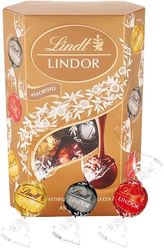 Цукерки шоколадні Асорті Lindt Lindor Assorted 237 г Швейцарія Швейцарія це не тільки гори та годинник!) ⠀ Ця країна дуже славиться своєю надзвичайною якістю щодо всього, від рівня життя до найсмачнішого шоколаду!) ⠀ LINDT LINDOR ASSORTED – преміальні шоколадні цукерки 4 смаків, упаковані у стильну золотисту коробочку з віконцем!) ⠀ Всі цукерки запечатані в яскраві блискучі фантики, колір кожного властивий одному з 4 смаків: • Молочний шоколад з фундуком та горіхово-шоколадною пастою!) • Білий шоколад із кремовою начинкою!) • Темний шоколад з 60% какао і такою ж темною кремово-шоколадною начинкою!) • Молочний шоколад із молочно-шоколадною пастою!) Ця коробка для шоколаду – ідеальний подарунок до будь-якої нагоди або блаженне частування тільки для вас. З 1845 року майстри Шоколат Lindt присвятили себе створенню ідеальних шоколадних делікатесів.