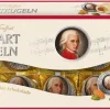Цукерки в білому шоколаді Maitre Truffout MOZART KUGELN 200г Австрія Шоколадні цукерки Mozart Kugeln - начинка складається з тонко підібраної комбінації марципану з мигдалем і фісташками, а також шару нуги з фундуком. Кожна цукерка загорнута у золотисту фольгу з портретом Моцарта. Багатий смак цукерок розкривається гармонійним поєднанням молочного білого шоколаду, марципану та нуги, в яких присутні виразні відтінки фісташок, мигдалю та фундуку. Побалуйте себе та своїх близьких. Цукерки заповнені фісташковим марципаном 24%, марципаном 24% та горіховою нугою 13%, покриті молочним білим шоколадом 17%.