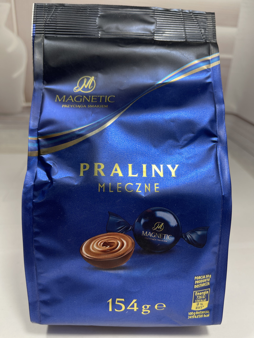Цукерки з начинкою вершкового пралине у молочному шоколаді Magnetic Praliny Mleczne 154г Польща
