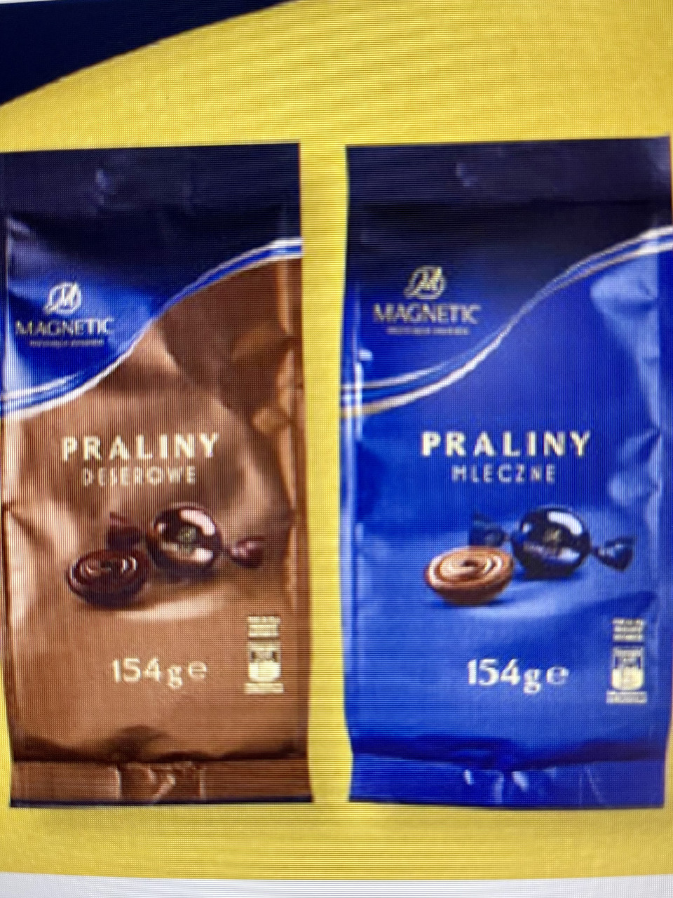 Цукерки з начинкою вершкового пралине у молочному шоколаді Magnetic Praliny Mleczne 154г Польща Цукерки із молочного шоколаду з начинкою із молочних вершків 43% Склад: цукор, какао-жир, рослинні жири (кокосова олія, соняшникова олія) у різних пропорціях, молоко сухе пефне, какао терте, молоко сухе знежирене (5%), какао-порошок зі зниженим вмістом жиру (4%), карамелізований цукор , емульгатор. : лецитини (з соєвих бобів); аромати. Шоколад: какао мінімум 30%