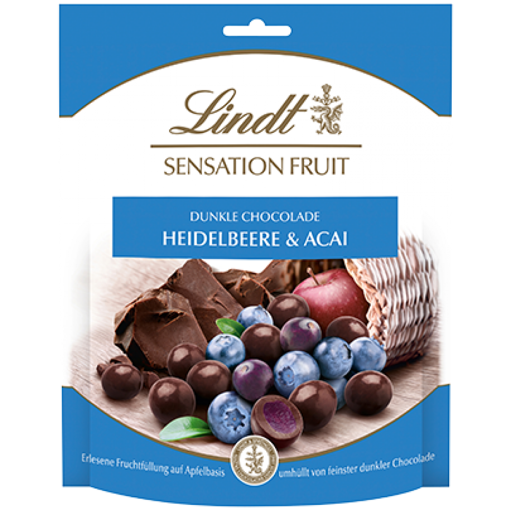 Драже шоколадне з фруктовою начинкою Lindt Sensation Fruit Heidelbeere&Acai 150г Франція Відкрийте для себе LINDT Sensation Fruit від LINDT. Унікальне поєднання кращого шоколаду LINDT із фруктовою начинкою на основі яблук. Солодка чорниця поєднується з вишуканістю ягід асаї. Дуже дрібні кульки з темного шоколаду з м’якою фруктовою начинкою (34%) Темний шоколад містить: Какао: не менше 47%