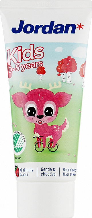 Дитяча зубна паста 0-5 років Jordan Kids 75мол Швеція Дитяча зубна паста Jordan Kids 0-5 років, 50 мл ppmF 1000 Зубна паста з ароматом малини призначена спеціально для молочних зубів. паста з низькою абразивністю дбайливо доглядає поверхню зубів дуже ефективна в боротьбі з карієсом у її складі – 98% натуральних інгредієнтів всі інгредієнти дбайливо підібрані, щоб зробити її найбільш натуральною, м’якою та ефективною паста має м’який фруктовий смак, який люблять діти містить легкий піно (без SLS) не тестується на тваринах та не містить інгредієнтів тваринного походження екологічна упаковка – більш ніж 50% тюбика виготовлено з переробленого пластику Об’єм: 50 мл Країна-виробник: Швеція