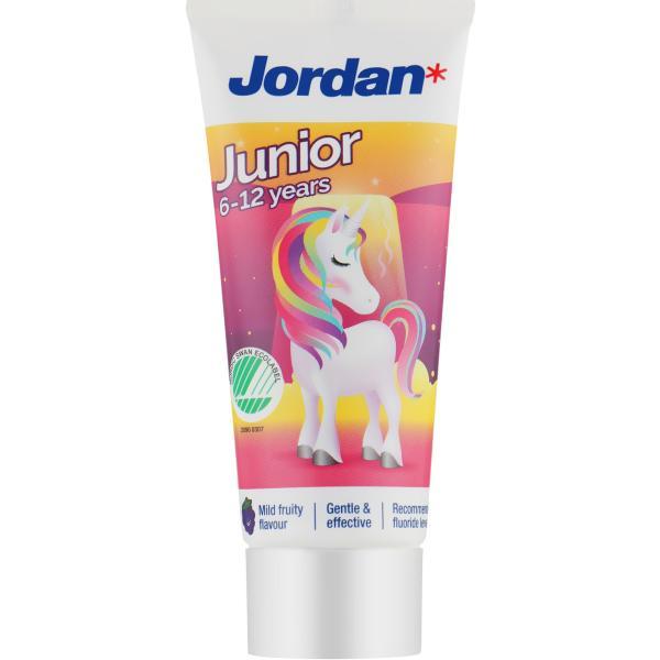 Дитяча зубна паста 6-12 років Jordan Junior 75мл Швеція Дитяча зубна паста Jordan Kids 6-12 років Фтор 1450 ppm Делікатна та ніжна зубна паста “Джордан Джуніор” складається з натуральних рослинних компонентів органічного походження. Процес чищення зубів стане для Вашої дитини захоплюючим і приємним, адже зубна паста має фантастичний фруктовий аромат. Об’єм: 50 мл. Країна виробник: Швеція.