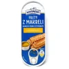 Філе макрелі в томатному соусі з перцем Filety z makreli w sosie pomidorowym z pierzem 120 г Польща Filety z makreli w sosie pomidorowym z pierzem — це ніжне рибне філе (скумбрії), приправлене соусом зі соковитих томатів із додаванням перцю. Макрель — риба родини скумбрієвих із Північного моря. М'ясо макрелі дуже багате на мікро- та макроелементи, вітаміни. Набір мікроелементом у консервах Marinero містить: цинк, залізо, йод, марганець, мідь, фтор, у невеликих кількостях — нікель, мобілен, хром і кобальт. У складі цієї риби є практично всі вітаміни з групи В, включно з В12, вітамінами С, D, PP, трохи менше вітамінів А, К, Н. Ще до неї входять макроелементи: сірка, хлор, фосфор, калій, кальцій, натрій, магній. У 300 грамах макрелі міститься добова потреба фосфору, а 400 грамів поповнить необхідну денну норму калію.