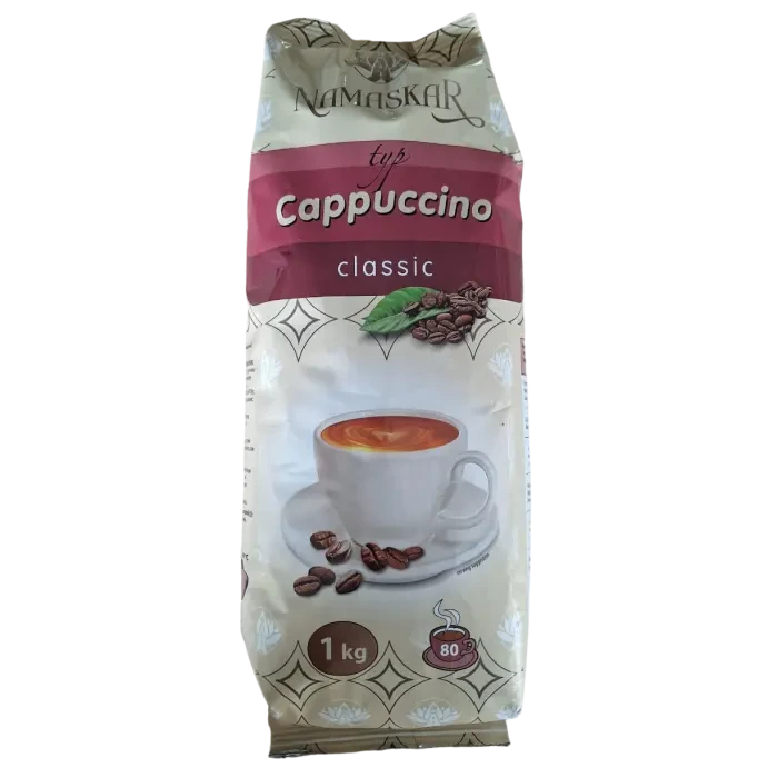 Гарячий шоколад Namaskar Hot Chocolate Германия 1кг Капучіно NamaskaR – смачний кавовий напій з з ніжним смаком, можна використовувати в якості основного напою. Капучино зі смаком від фірми Namaskar підійде для швидкого приготування ароматного і підбадьорливого напою як вдома, так і в офісі. Смак цього капучино м’який, з ніжною пінкою. З перших же секунд заварювання Ви відчуєте яскравий аромат фундука, який нагадає Вам про улюблені цукерки з дитинства. Випускається у вигляді порошку високої якості. Наділений гарною сипкістю, добре розчиняється і не залишає осаду. До його складу входять всі необхідні компоненти для приготування смачного капучіно. Спосіб приготування: Візьміть 3 чайні ложки порошку і додайте 150 мл окропу. Добре розмішайте та насолоджуйтесь Вашим капучіно