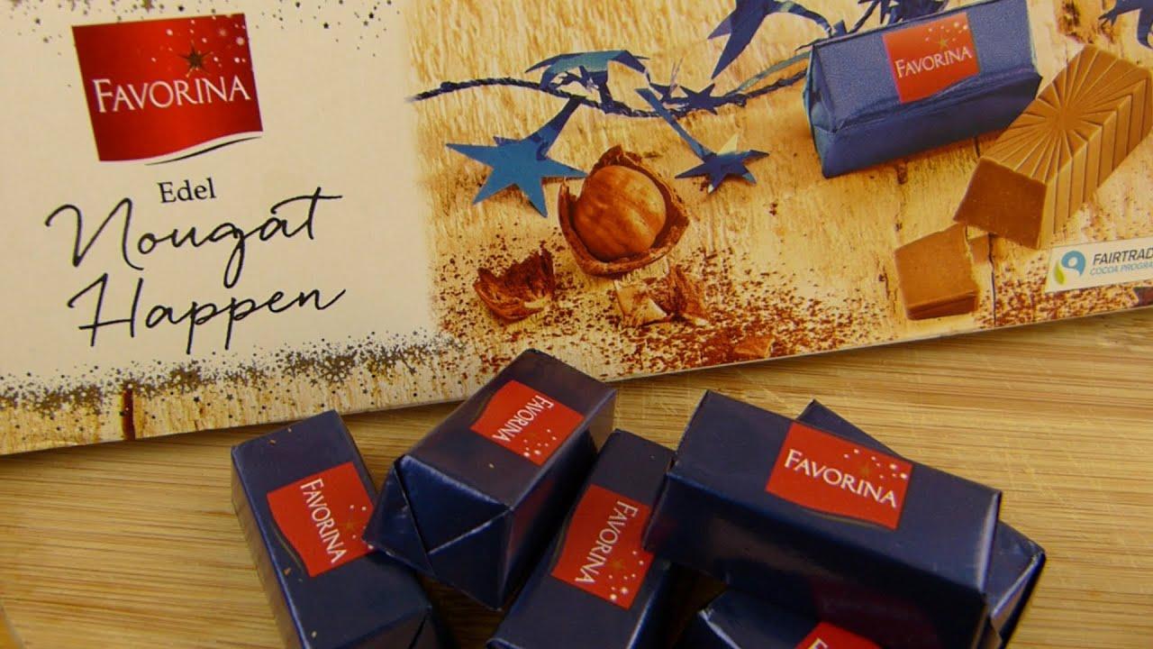 Горіхова нуга в молочному шоколаді (конфети) Favorina Fein Nougat Happeu 125 г Німеччина Favorina Fein Nougat Happeu — це ласощі з подрібненого фундука та цукрової пудри. Основний компонент фундук 33%. Ранок із поєднанням солодких, але не нудотних ласощів і чарівної кави приносить енергію, заряд бадьорості та дарує потік позитивних емоцій на весь день. Країна-виробник Німеччина
