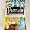 Гранола — традиційний для , а також страва для , що містить , и , іноді , які зазвичай запечені до хрустких станів. У процесі запікання суміш періодично перемішують, щоб домогтися розсипчастої консистенції, схожої на сухі сніданки. Іноді до суміші додають , як-от або . Привіт, день! Granola Nuts Hello Day — це продукт із категорії натуральних інгредієнтів, що ідеально підходить для сніданку або закуски. Це суміш смачних і поживних вівсяних і ячмінних пластівців із сухофруктами та цукатами, горіхами та сумішшю. До складу граноли входить смажені кокосові чипси, ананас карамелізований. -Без пальмової олії -Без глюкози, фруктози - Без консерванту - дієтичний -вегетаріанець — натуральний