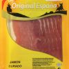 Вишукана нарізка хамона курадо від іспанського бренду. Хамон витримується близько 7-9 місяців, що робить його смак ще більш насиченим, а текстуру більш приємною. Стане відмінною закускою до улюблених напоїв, роблячи атмосферу відпочинку ще яскравіше. Для зручності хамон вже порізаний слайсами і розфасований.