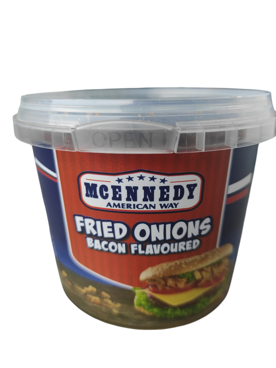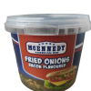 Хрусткий смажений лук зі смаком бекону Fried Onions Bacon Flavoured 100 г Німеччина Смажений лук — ароматне та хрустке доповнення до багатьох страв. Вона чудово просмажується, що надає їй золотистий відтінок. На кухні ми успішно можемо додати: вареників із картоплею, пельменів, м’ясних котлет, овочевих шашликів, запіканок, салатів, риби. Завдяки ніжності й аромату смаженої цибулі з «сковороди» оживає смак приготованих м’ясних, рибних і овочевих страв. Склад: цибуля, олія, пшеничне борошно, сіль. Смажений лук — ідеальна основа будь-якого засмаження. Але сушена смажена цибуля — це ще й чудова сировина для будь-якої несолодкої випічки. Хліб, тістечка, піца, сендвічі, гамбургери та чизбургери набувають зовсім іншого смаку з хрусткими шматочками смаженої цибулі. Користь смаженого лука зумовлена наявністю низки вітамінів і мінералів, які зберігаються навіть після смаження. Готовий смажений лук дуже зручний для сучасних зайнятих господинь. Якщо Вам колись або просто не хочеться чистити/різати цибулю та проливати над ним сльози, то вихід — готовий приправ смажений лук! Смак готового смаженого променя під час додавання до бульйону або до інших страв не відрізняється від свіжоприготовленого! Справжній аромат смаженої цибулі. Цибуля підсушена хрусткою, як чипси. У бульйоні вона насичується рідиною і стає м’якою, як звичайний смажений лук. Можна навіть не розмочуючи, посипати їх бутерброди — це теж надає певну пікантність. Цей продукт дуже легкий за вагою. Щоб Ваша страва стала ще яскравішою, рекомендуємо ознайомитися з нашим розділом: