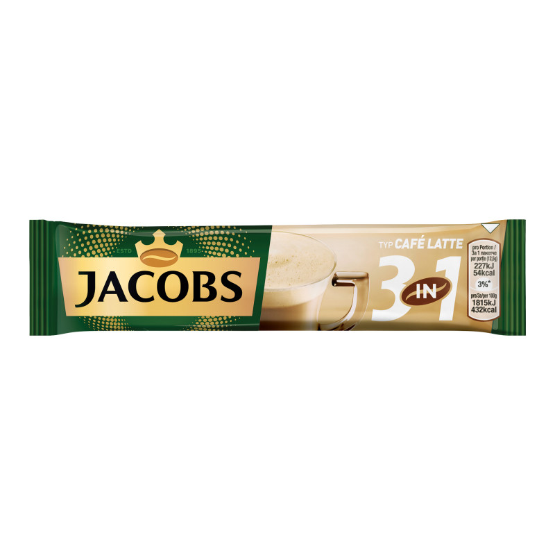 Кава розчинна Jacobs Cafe Latte 3 в 1 в стиках 10х12.5г 125 г Нідерланди Насолодитися улюбленим кавовим напоєм можна буде де угодого, використовуючи розчинну каву в стиках 3 в 1 Jacobs Cafe Latte. Для кавоманів особливо важливо, щоб під рукою завжди був улюблена кава, але носити із собою величезну пачку не зовсім зручно, тому, вирушаючи в подорож або довгу поїздку, можна захопити улюблений напій у стиках. Зручний у використанні, він зберігає каву цілими та неушкодженими, не пропускає повітря та зберігає початковий аромат. Приготувавши його, Ви зможете потішитися повітряній пінці та ніжному смаку насиченого напою. Він підбадьорить Вас і додасть енергії на цілий день.