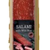 Ковбаса салямі з кабаном Deluxe Salami with Wild Boar 400г Польща • салямі виготовлена зі свинини, яловичини з додаванням м'яса кабана та суміші приправ; • може зберігатись при температурі холодильника; термін придатності 90 днів.