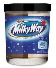 Шоколадно-молочний крем, пр-ва Великобританії, 200 г Шоколадна паста від Milky Way міститься в міцній банці зі скла. Поєднуючи молочний і шоколадний крем, виробник спробував відтворити смак відомого шоколадного батончика. Продукт має апетитний вигляд, приємно пахне і має ніжну консистенцію. Він добре намощується на печиво, вафлі, хліб та іншу випічку, ним промазують коржі торта. Діти люблять їсти його просто ложками. Таку пасту можна використовувати як начинку для домашніх круасанів, горішків, заварних тістечок.