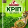Кріп сушений мелений ТМ "КвітАромат" 8 г Склад: кріп сушений мелений Кріп — ароматична трава з ніжним, перистим зеленим листям. Це популярний у всьому світі інгредієнт, який використовується в багатьох європейських і скандинавських стравах. Укроп — це трава, яку особливо добре поєднується з усіма видами морепродуктів, овочами, салатами, консерваціями або соусами на основі йогурту та/або сметани. Смак кропу трав'яний із легким анісовим смаком солодки. Оскільки він має такий унікальний смак, невелику кількість кропу може мати велике значення, тому кріп так добре використовувати як приправу. Периста текстура листя кропу має гарний вигляд, а невелика гілочка кропу може надати страві помітний аромат. Кріп також гарний у салатах і є ключовим компонентом, що надає домашньому соусу свій унікальний аромат. Під час використання в кулінарії, зелень кропу втрачає смак у разі тривалого приготування, тому її треба додавати тільки в останню хвилину. Якщо вам необхідно замінити свіжу зелень кропу — 1 столова ложка нарізаного свіжого кропу буде еквівалентна 1 чайній ложці висушеного кропу. Зелень кропу містить невелику кількість кальцію, марганцю та вітамінів А і С, а також клітковину та фітонутрієнти