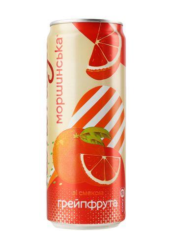 Лимонад Моршинська лимонада зі смаком грепфрута середньогазований 0,33 л Моршинська лимонада — це безалкогольний газований напій, вироблений на основі природної мінеральної води “Моршинська” та натуральних фруктових соків. Він не містить консервантів, штучних барвників і ароматизаторів. Напій представлений у кількох смаках, включно з яблуком, апельсином і персиком, а також лимоном і лайм (у варіанті “Мохіто”).