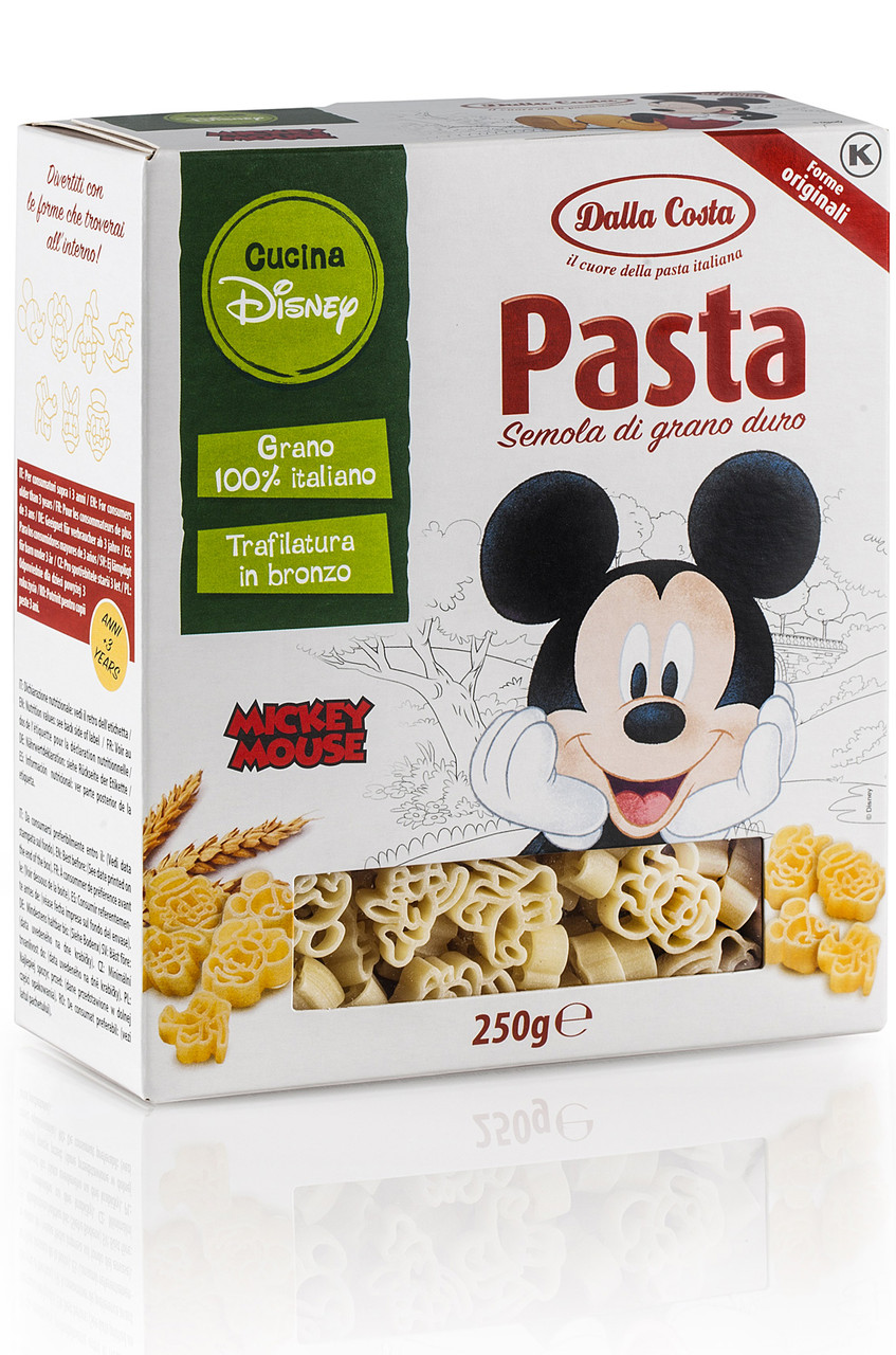 Макарони дитячі Dalla Costa Bio «Мікі Маус» — безперечно, одні з головних героїв італійського столу. Різнобарвні макаронні вироби, виготовлені у формі улюблених персонажів мультфільму «Мікі Маус», напевно сподобаються малюкам. Рекомендується використовувати для приготування гарнірів, салатів і супів. Компанія Dalla Costa — лідер із виробництва незвичайної пасти. В її асортименті понад 40 форм і 20 смаків. Паста Dalla Costa виготовлена з добірної пшениці твердих сортів, 7-9 min
