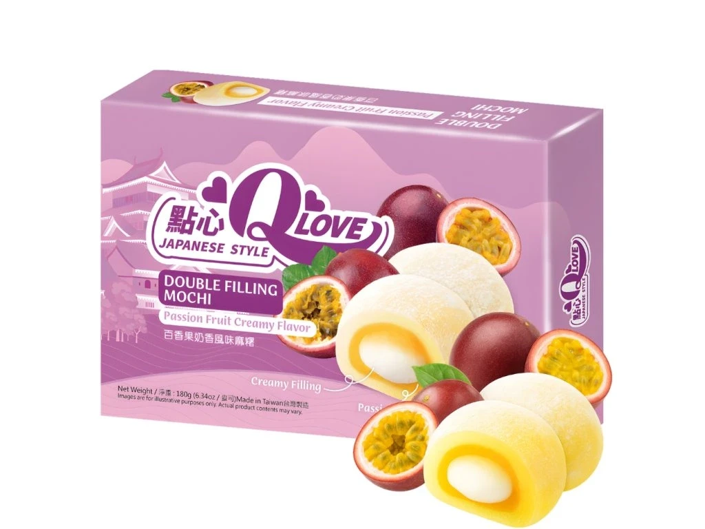 Моті (японське тістечко) маракуйа QLove Double Filling Mochi Passion Fruit Creamy Flavo 180г Тайвань QLove Japanese Style Double Filling Mochi Passion Fruit Creamy Flavor – це сучасна інтерпретація традиційного японського десерту, що представляє собою м’яке рисове тісто з двошаровою начинкою. Десерт поєднує в собі кислинку тропічної маракуї та ніжну вершкову текстуру.Усередині знаходиться ароматний крем зі смаком маракуї, доповнений вершковим центром для створення гармонійного смакового балансу.