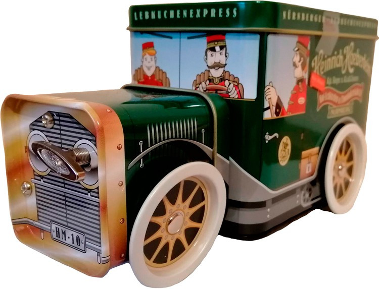 Музична машинка з пряниками Heinrich haeberlein 200г Німеччина Хочете поласувати традиційними різдвяними ласощами з Німеччини? Тоді рекомендуємо звернути увагу на глазуровані пряники Nurnberg Heinrich Haeberlein у металевій коробці. У складі глазурованих пряників ви знайдете лише натуральні інгредієнти, а саме: борошно пшеничне, горіхи, натуральний мед, цитрусові цукати, прянощі.