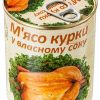 М'ясо курки у власному соку L'appetit 340 г Україна ТОВ «Одеспродкомплекс» — провідний вітчизняний виробник високоякісної м'ясної консервації та печінкових паштетів з 1999 року. Для виробництва використовується тільки високоякісна сировина, що позитивно відбивається на смакових якостях продукції, що випускається. Коли потрібно швидко та смачно перекусити, немає нічого кращого, ніж м'ясні консерви та паштети L'appetit! Смак: властивий тушкованого м'яса з ароматом прянощів без стороннього присмаку Енергетична цінність на 100 г продукту: 236 ккал Харчова цінність у 100 г продукту: білки 14.2 г, жири 15.3 г Склад: м'ясо куряче 97.4%, морква столова свіжа, сіль кухонна кам'яна, лист лавровий сухий, перець чорний мелений