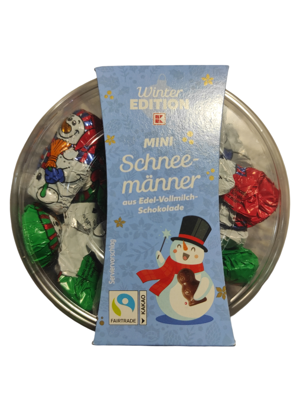 Набір Шоколадних Сніговики Winter Edition Mini Wichtel 125 г Німеччина Набір шоколадних Сніговиків, виготовлених із молочного шоколаду на шоколадній фабриці в Німеччині. Шоколад містить щонайменше 33% какао маси. Какао-боби зібрані на екологічно чистих плантаціях і сертифіковані за програмою Fairtrade.