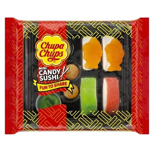 Набір желейних цукерок Суші Chupa Chups Mini Candy Sushi 100г Нідерланди Веселі та солодкі суші, нігірі, каліфорнійські ролі, маки та урамаки. Цей продукт виготовляється з фруктового соку. Ідеально підходить для будь-якого випадку та події: на уроці, у парку, офісі, вдома, на вечірках та у перерві. Упаковка 100г зручна в дорозі, на вечірці або як подарунок-сюрприз.