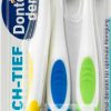 Набір зубних щіток з 3 штук Mittel Dontodent hoch-tief середня жорсткість Німеччина Особливості зубної щітки Dontodent hoch-tief-mittel: Ергономічна ручка Очищувач мови Зі спеціальним міжзубним зрізом для оптимального очищення Довші щетинки ідеально підходять для чищення важкодоступних міжзубних проміжків, короткі щетинки ретельно очищають поверхню зубів.