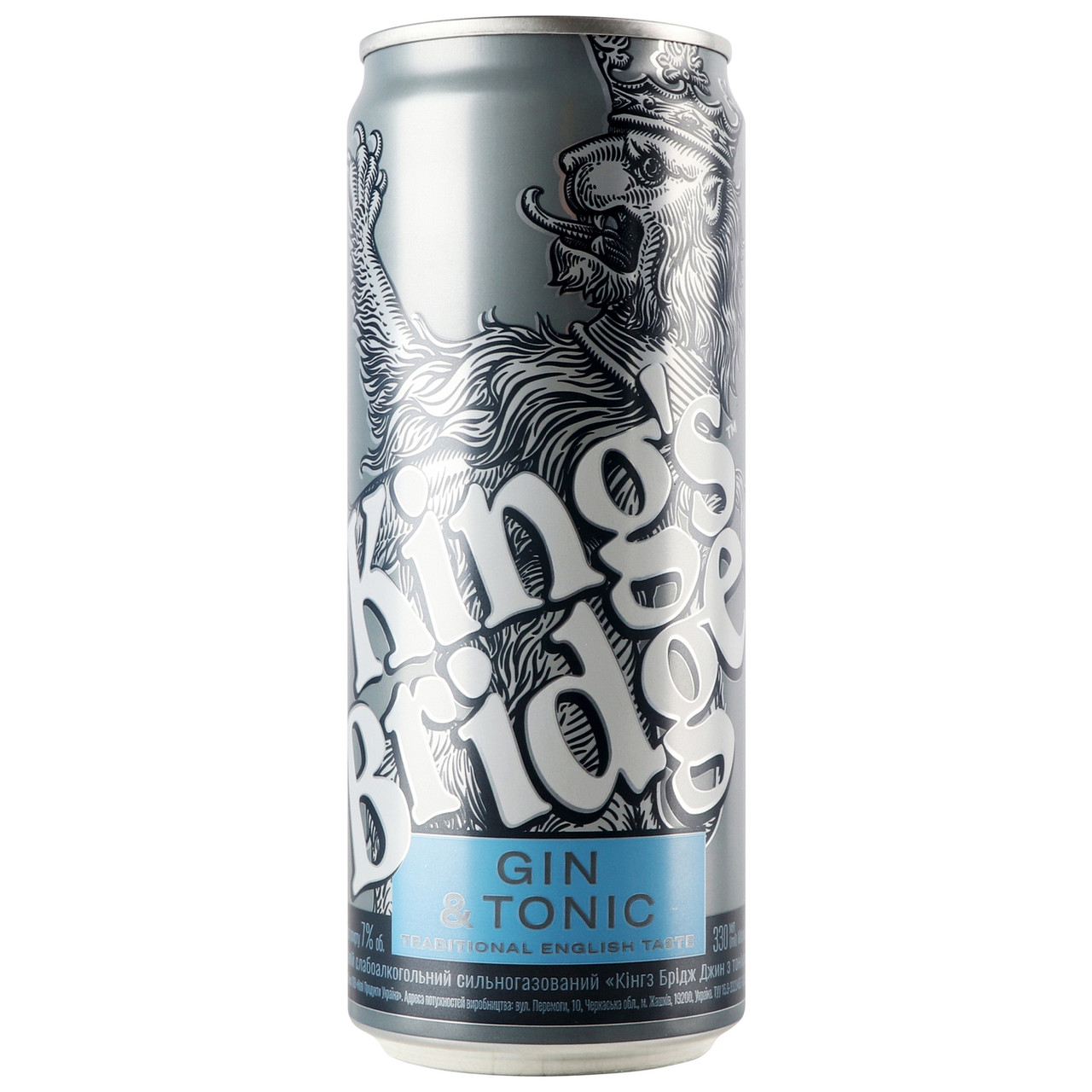 Напій слабоалкогольний King’s Bridg Gin&Tonic 7% 500 мл Україна King’s Bridge — слабоалкогольний напій, коктейль благородного смаку, королівського походження на основі настоювання “Дин King’s Bridg” і натурального соку. Слабоалкогольний напій King’s Bridg Gin&Tonic є класичним поєднанням джину та тоніка — одного з найпопулярніших у світі коктейлів. Цей напій подарує вам справжнє задоволення у формі почуття легкості та розслабленості, такого бажаного наприкінці трудового дня. Він представлений у класичній бляшанці об’ємом 0.5 л з унікальним дизайном, що змушує звернути на нього увагу.