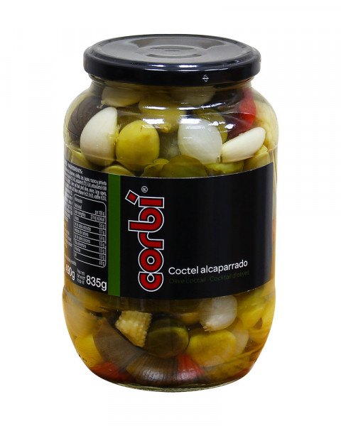 Оливки коктейль Corbi Coctel Alcaparrado 835г Іспанія Оливки Corbi Coctel Alcaparrado — це маринова, велика, іспанська оливка з додаванням шматочків солодкого перцю, огірка, цибуля, часнику, кукурудзи та смачних оливок, що надає неймовірний смак і пікантний посмак. Ідеальні для салатів, закусок або як окрема страва. Насправді оливки — це універсальний плід, що поєднується з різними закусками, гарячими стравами та напоями. Встановлено, що щоденне вживання оливок знижує ризик розвитку захворювань серцево-судинної системи, зменшується ймовірність інфарктів і раку. Речовини, що містяться в оливках, зупиняють старіння організму. Оливки кладуть у салати, ними прикрашають мініатюрні бутерброди з пікантними або плавленими сирами та шинкою. Чорні оливки найкраще підходять до м’яса, зелені — до холодних рибних страв. Гарні оливки та як гарнір. Рибним, м’ясним, овочевим стравам, соусам і супам вони надають пікантного смаку. Дуже популярні коктейлі з оливками. Смачні, вишукані та корисні страви можна приготувати зі звичайних продуктів! Ви втомилися від одноманітності щоденного меню? Сміливо експериментуйте разом з Намі! Рекомендуємо, ознайомитися з корисними та смачними продуктами, у наших розділах: