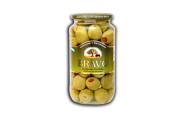 Оливки зелені Гігант фаршировані перцем Bravo Gordal Rellena de Pimiento 550г/1000 г Іспанія Оливки Гордаль, фаршировані перцем. Оливки Мансанілья відомі у всьому світі своїм смаком, текстурою й кольором. У них дуже м’який особливий смак, і він ідеально підходить як компаньйон до аперитивів. Оливки, фаршировані перцем, вважаються справжнім делікатесом через контраст смаку та кольори, які вони створюють. Насправді оливки — це універсальний плід, що поєднується з різними закусками, гарячими стравами та напоями. Встановлено, що щоденне вживання оливок знижує ризик розвитку захворювань серцево-судинної системи, зменшується ймовірність інфарктів і раку. Речовини, що містяться в оливках, зупиняють старіння організму. Оливки кладуть у салати, ними прикрашають мініатюрні бутерброди з пікантними або плавленими сирами та шинкою. Чорні оливки найкраще підходять до м’яса, зелені — до холодних рибних страв. Гарні оливки та як гарнір. Рибним, м’ясним, овочевим стравам, соусам і супам вони надають пікантного смаку. Дуже популярні коктейлі з оливками. Смачні, вишукані та корисні страви можна приготувати зі звичайних продуктів! Ви втомилися від одноманітності щоденного меню? Сміливо експериментуйте разом з Намі! Рекомендуємо, ознайомитися з корисними та смачними продуктами, у наших розділах: