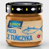 Паштет із тунця Losos Ustka Pasta z Tunczyka 170г Польща тунець багатий вітамінами та мінералами (особливо калієм, фосфором, сіркою, кобальтом та хромом), жирними кислотами омега-3 та омега-6, а також містить у собі багато білка. Більше того, за кількістю білка м'ясо тунця не поступається навіть червоному м'ясу: тунець є лідером за вмістом білка серед риб (у 100 г м'яса тунця – 24 г білка), а кулінари часто називають його м'ясо «морською телятиною». Ця риба має відмінні гастрономічні якості та корисні властивості, завдяки чому дуже популярна серед населення всіх країн світу. При будь-якому виді обробки м'ясо риби зберігає корисні якості та смак. Тунця відварюють, тушкують, запікають, смажать, консервують та сушать. На додачу, тунець – єдина риба, в якій не заводяться паразити небезпечні для людини. Рекомендується вживати м'ясо тунця при алергічних захворюваннях, підвищеному тиску, хворобах серцево-судинної системи, артриті, артрозі. Корисно воно студентам, людям похилого віку та людям з ризиком утворення злоякісних пухлин. Крім того, його із задоволенням включають до свого раціону бодібілдери, адже білок тунця сприяє ефективному нарощуванню м'язової маси. Тунець є дієтичним продуктом і рекомендований тим, хто страждає від зайвої ваги (допомагає знімати набряки, знищує холестерин низької густини та насичує організм повноцінним білком). Інгредієнти: вода, тунець (32%; Katsuwanus pelamis / район вилову: Тихий океан FAO 87 / виловлений в морі), олія (рапсова та соняшникова), крохмалі, молочні білки, лактоза, соєве борошно, сіль, спеції (включаючи селера), емульгатор : яєчний альбумін, підсилювач смаку: глутамат натрію, цукор, загусники: гуарова камедь та ксантанова камедь, мелений часник, барвник: капсантин, ароматизатори.