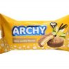 Печиво цукрове глазуроване з ванільною начинкою Арчі Zhytomyr Lasoshchi 94 г Україна Інформація про алергени: містить пшеницю, молочні та яєчні продукти, продукти перероблення сої. Може містити сліди: двоокисі сірки та сульфітів, ячменю, жита, ядер бобів арахісу. Поживна (харчова) цінність на 100 г продукту: білків — 5,7 г; жирів — 25,7 г; вуглеводів — 61,5 г. Калорійність (енергетична цінність) 100 г продукту — 507 ккал (2123кДж). Умови зберігання: зберігати за температури 18±5) З і відносної вологості повітря не більш ніж 75%.