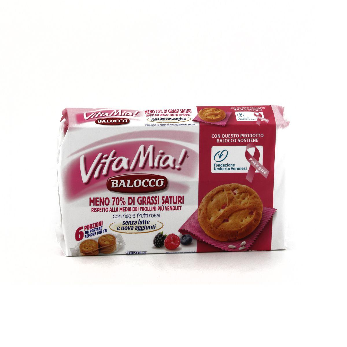 Печиво без молока, яєць, пальмової олії “Лісові ягоди та повітряний рис” Vita Mia Balocco (6*47г) 280г Італія Компанія Balocco представляє неймовірно смачну серію печива без цукру Vita Mia з лісовими ягодами, що приємно здивує своїм зовнішнім виглядом! Спробувавши печиво Vita Mia, ви довго насолоджуватиметеся його особливим смаком. У складі печива містяться лише натуральні інгредієнти. Печиво Vita Mia приготовлене БЕЗ КОНСЕРВАНТІВ, БЕЗ КРАСНИКІВ, БЕЗ ТРАНСГЕННИХ ЖИРІВ, БЕЗ ГМО. Завдяки зручній упаковці, печиво Vita Mia можна брати із собою в дорогу або на роботу. Це печиво чудово підійде до сімейного чаювання з рідними чи друзями. Печиво для веганів.