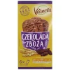 Печиво з шоколадом і пластівцями Vitanella Czekolada & Zboza (6х50г) 300 г Польща Печиво Витанелла з шоколадом і Пластівцями. Дуже смачне і поживне печиво з шматочками шоколаду і злаковим пластівцями. Продукт є відмінним джерелом харчових волокон, магнію і тіаміну. Крім того, печиво збагачене залізом і вітаміном Е. Vitanella Czekolada & Zboza виготовляється з ретельно відібраних натуральних продуктів, воно одночасно поєднує в собі 5 видів злаків : пшениця, овес, жито, ячмінь та жито. Таке печиво стане смачним і, одночасно, корисним перекусом. В коробці знаходяться 6 окремих упаковок, у кожній з яких по 4 печива