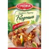 Приправа для шашлику — спеції (коріандр, солодкий перець, гірчиця, чорний перець, чебрець, мускатний горіх, запашний перець, фенхель, імбир, чилі, майоран, орегано), сушені овочі (лук, цикорій, часник, паприка, петрушка), сіль, цукор.