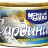 Сардина в олії Морський Світ 230 г Сардини натуральні з додаванням олії, 230 г ГСТУ 15-70-2001 Кількість банок у ящику 48 шт. добірна риба, олія та спеції Натуральна сардина з додаванням олії — це смачний і корисний продукт харчування. Вона багата на вітаміни та мінеральні елементи. Жирні кислоти Омега-3, які є в сардині, сприятливо впливають на роботу серцево-судинної системи. З консервованою сардиною Ви зможете приготувати вишукані супи, гарніри, салати та закуски.