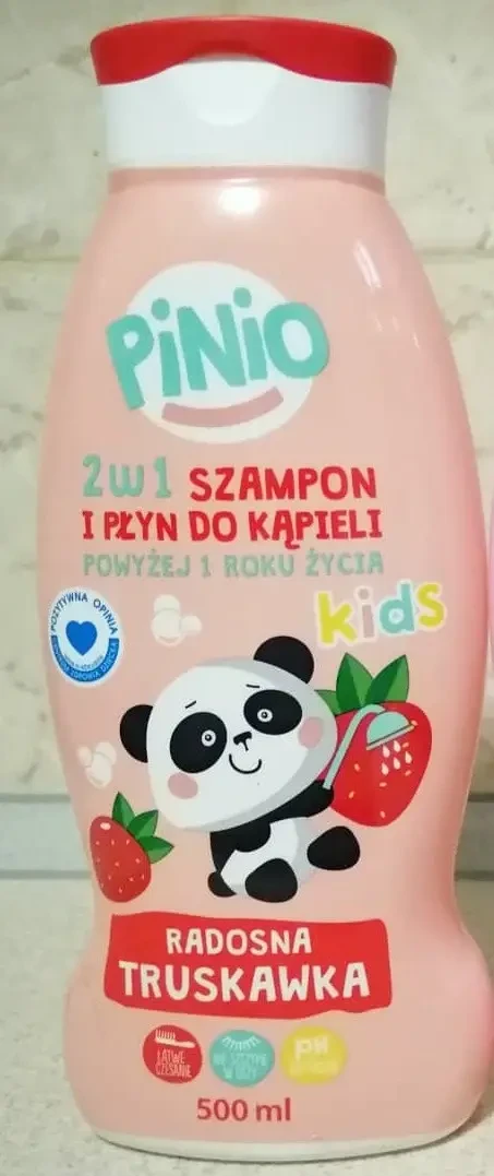 Шампунь дитячий 3 в 1 Pinio truskawka 500 мл Польща М’який шампунь, гель для душу та лосьйон для ванн 3 в 1 Pinio делікатно очищає й доглядає за тілом і волоссям вашої дитини. Ніжна формула, збагачена д-пантенолом, має логічне дію, а додавання екстракту полуниці й алое зволожує й доглядає за чутливою шкірою дитини. Не щипає очі. Має нейтральний pH для дитячої шкіри. Протестовано дерматологами. Продукт має позитивний висновок Інституту матері та Рібенка Оп-Ф-5392/2021. 97% сировини природного походження.