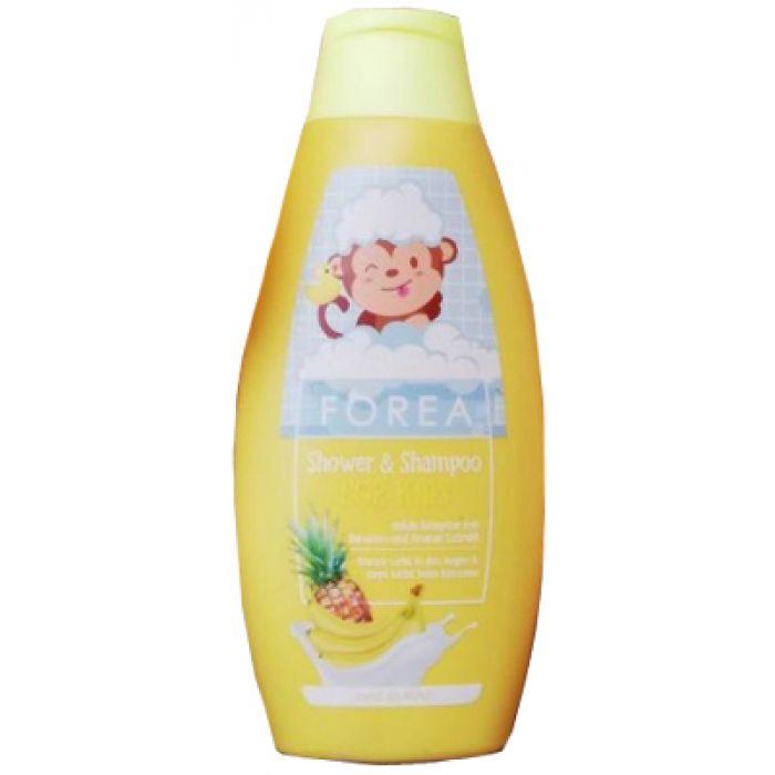 Шампунь дитячий для душу Forea Shower Shampoo Kids 500 Німеччина Дитячий шампунь Forea — «ананас і банан». Ефективна формула шампуню Forea стимулює ріст волосся. Вітамін вітаміну, що входять до складу Е зміцнює і зволожує волосся, захищаючи від зовнішніх шкідливих впливів. Природний екстракт кокоса дарує волоссю м’якість і шовковистість, полегшуючи розчісування. Провітамін В5 насичує волосся силою. Підходить для щоденного використання. Має приємний, фруктовий запах, який наповнить ванну приємними ароматами та зробить купання цікавим і приємним заняттям. Без силікону.