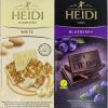 Шоколад (2 шт.) з карамелізованим шаром мигдалю Florentine 100 г і темний з Чорниною 80 г Heidi Румунія Понад 25 років тому відомий і пристрасний швейцарський шоколтьє заснував компанію HEIDI, передавши секретне мистецтво створення шоколаду. Назва компанії була натхненна маленькою дівчинкою з історії Джоанна Спайрі, яка завжди побачила світлий бік життя. Сьогодні HEIDI залишається шоколадом, який надихає смачними поєднаннями та сильним позитивним посланням. Зірковий склад — шар мигдальних пластівців у карамельному сиропі та білому шоколаді! Спробуйте дивовижне поєднання делікатного та хрусткого смаку. Виготовлено за французькою рецептом 17-го століття, створеною на честь флорентійської королеви Катерини Медічі.