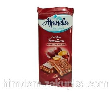 Молочний шоколад Alpinella Czekolada Peanuts and Raisins 90 г альпінела з арахісом і родзинками Шоколад Alpinella 90 г альпінела Неймовірний смак, дуже ніжний, як милка. Він вам сподобається. В асортименті: молочний, гіркий, тоффі, з арахісом, з кокосом, з полуницею. Вага: 90-100 г. Молочний шоколад з арахісом і родзинками, буде прекрасним доповненням до чаю або кави Виробник: Польща.