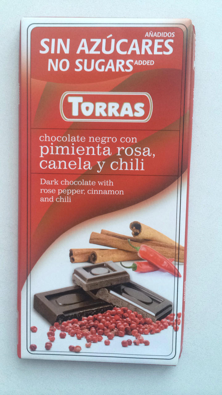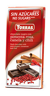 Шоколад Torras Rose, Canela y chili без цукру, 75г- оригінальний темний шоколад з рожевим перцем, корицею і перцем чилі. Якщо Ви любите темний шоколад і готові експериментувати з новими смаками, то цей шоколад, безсумнівно, Вас здивує. До складу шоколаду не входить цукор, що його замінює натуральний підсолоджувач мальтит. Він не викликає карієс, і у порівнянні зі звичайним цукром, мальтит містить удвічі менше калорій. Його досить низький глікемічний індекс (ГІ = 25-30), що регулює рівень вмісту глюкози в крові. Не містить глютену! Завдяки тому, що до складу шоколаду Torras не входить цукор, Ви сміливо можете насолодитися не тільки одним шматочком, але і кількома кубиками шоколаду Torras, без побоювання нанесення шкоди організму і Вашій фігурі. Продукт підходить для людей, що харчуються безглютенової дієті і для діабетиків. Склад: підсолоджувач (мальтит), какао терте, масло какао, інулін, знежирений какао-порошок, рожевий перець (1%), порошок кориці (1%), емульгатор (лецитин соняшнику), порошок чилі (0,3%), натуральний ароматизатор ванілі, натуральний аромат кориці. Також у нашому магазині широкий асортимент товарів: БЕЗ ЦУКРУ, БЕЗ ГЛЮТЕНУ, БЕЗ ЛАКТОЗИ, БЕЗ ПАЛЬМОВОЇ ОЛІЇ з якими Ви можете ознайомитись перейшовши в наші розділи: – ; – ; – .