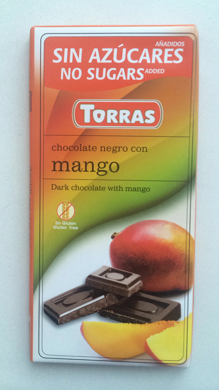 Шоколад без цукру та глютену Torras чорний зі шматочками манго Іспанія 75 г