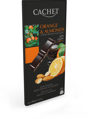 Бельгійський шоколад преміумкласу Cachet (Кашет) чорний 57% какао з апельсином і мигдалем. Насолоджуйся цим шоколадом ви, непомітно для себе, опиніться в шоколадному раю!!!